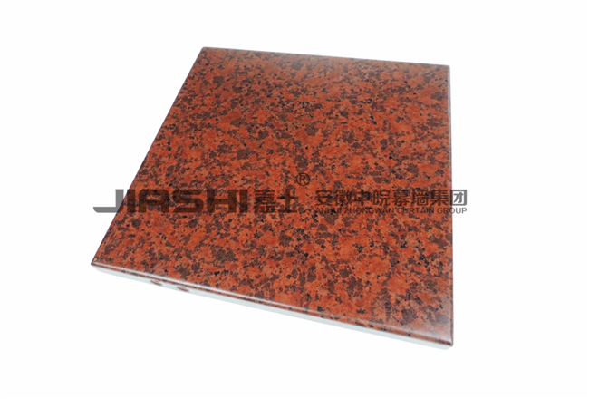 仿石纹氟碳铝单板的主要特征是铝单板表面逼真的石纹色,装饰效果喜人,且质量轻、安装方便,几乎可以替代大理石这种幕墙材料。它主要通过热转印等工艺,把石纹色转印到铝板表面,然后再喷上氟碳罩光漆,经过多次喷涂和烘烤,较终得到客户定制的石纹效果。