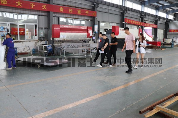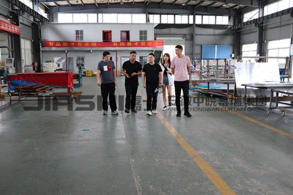考察组先后对我司的生产设备和生产流水线进行了参观,从生产原料,到剪裁、成型和喷涂等工艺都有了详细的了解。